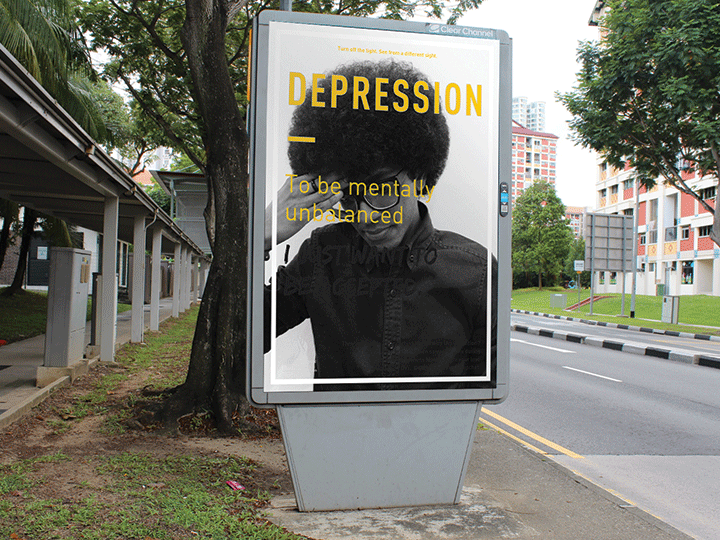 Using words that are commonly related to depression, the posters offers two differing perspectives to the reader. The posters will be printed using phosphorescent ink that shows the hidden message in the dark. In the light, the message will portray the general public’s definition of the word. However, in the dark, the poster will reveal another definition of the same word from the view of a patient with depression. A call-to-action